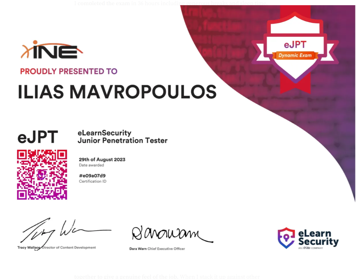 - eJPT is for entry-level Penetration testers that validate that the individual has the knowledge, skills, and abilities required to fulfill a role as a junior penetration tester